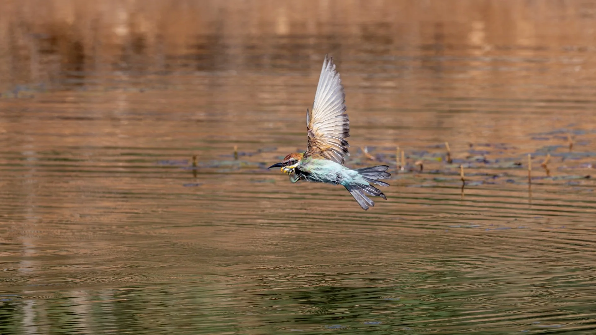 Nature havens in cities are wonderful places to spend time in. This spot in the heart of Jerusalem is one of my favourites. There was a lot of action going on in and around the small lake over the course of one morning. The peak was when a flock of European Bee-eaters arrived to take a bath, diving repeatedly at high speed into the water, completely submerging themselves. It was a spectacular show to witness, they are extremely fast flyers so I was happy to manage to get a few shots that were in focus to record the event.