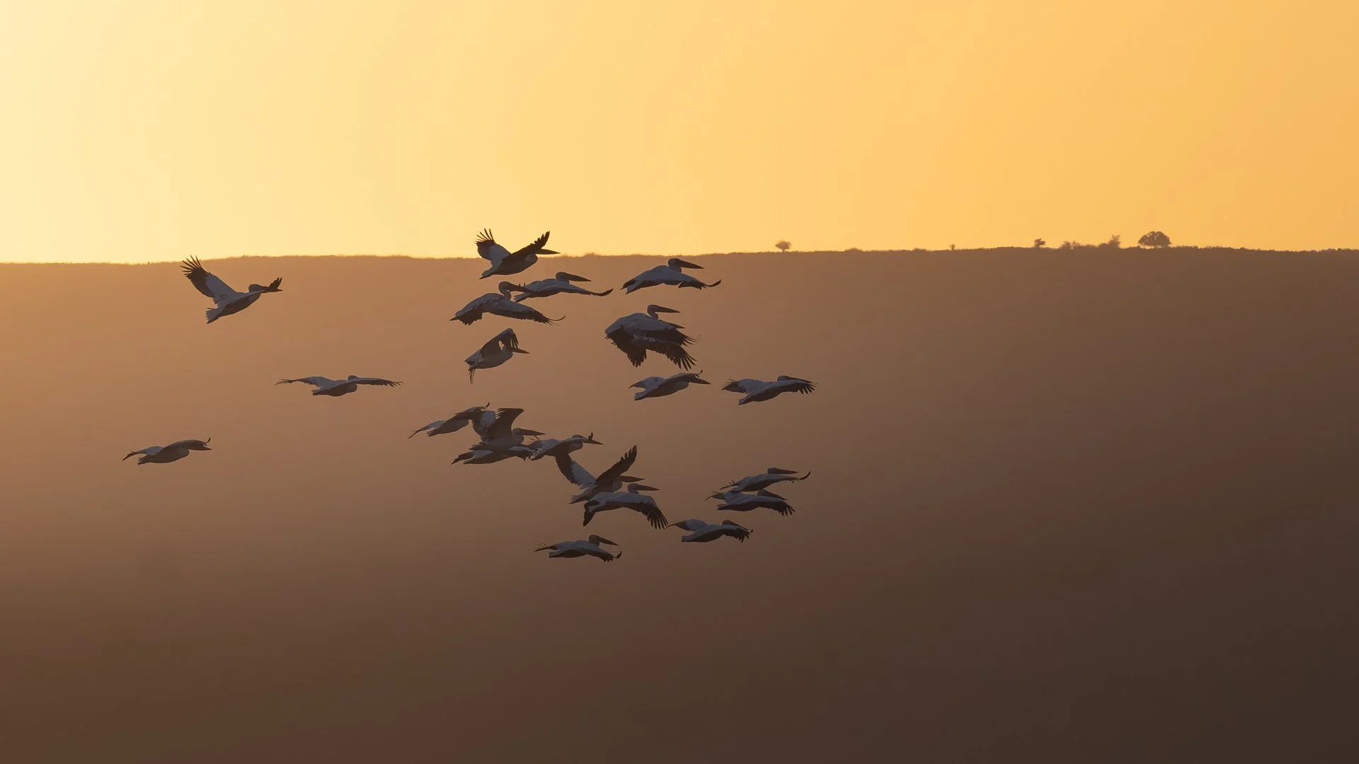 The pelicans take flight