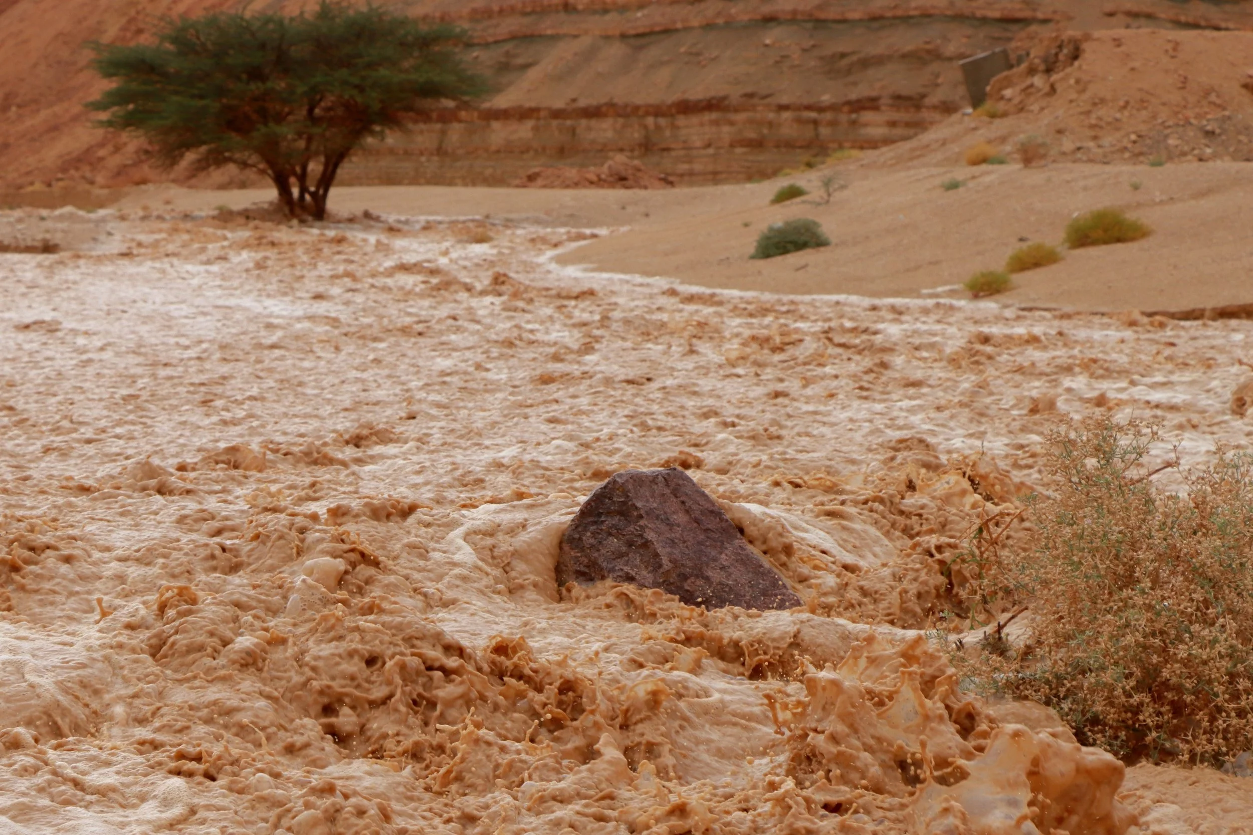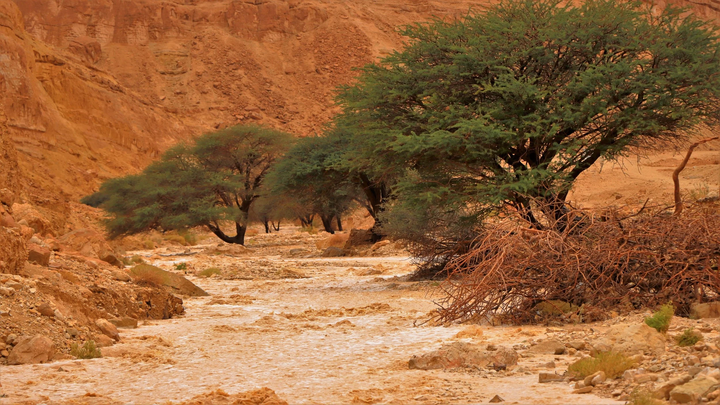 Desert floods happen occasionally in the Southern Arava. To see water flowing in these extreme arid landscapes is a blessing and a celebration.