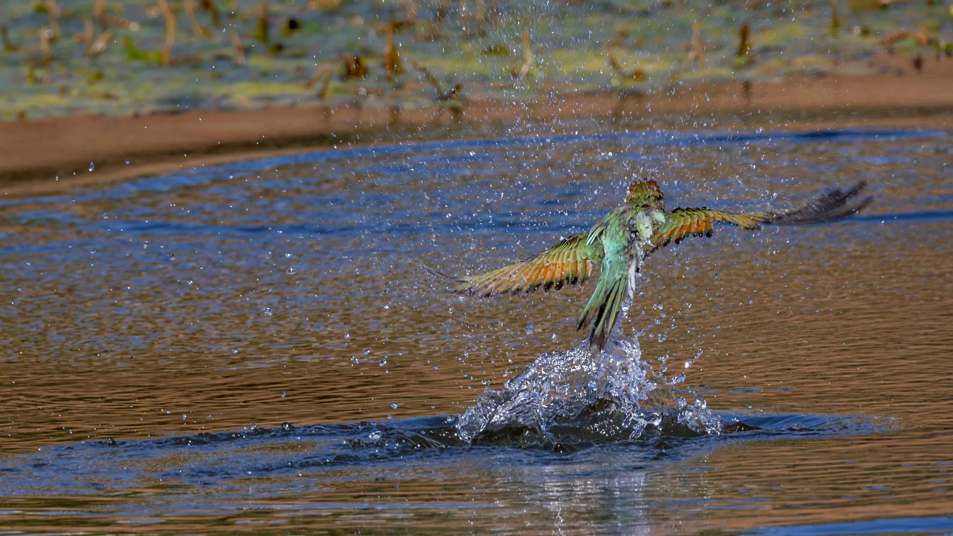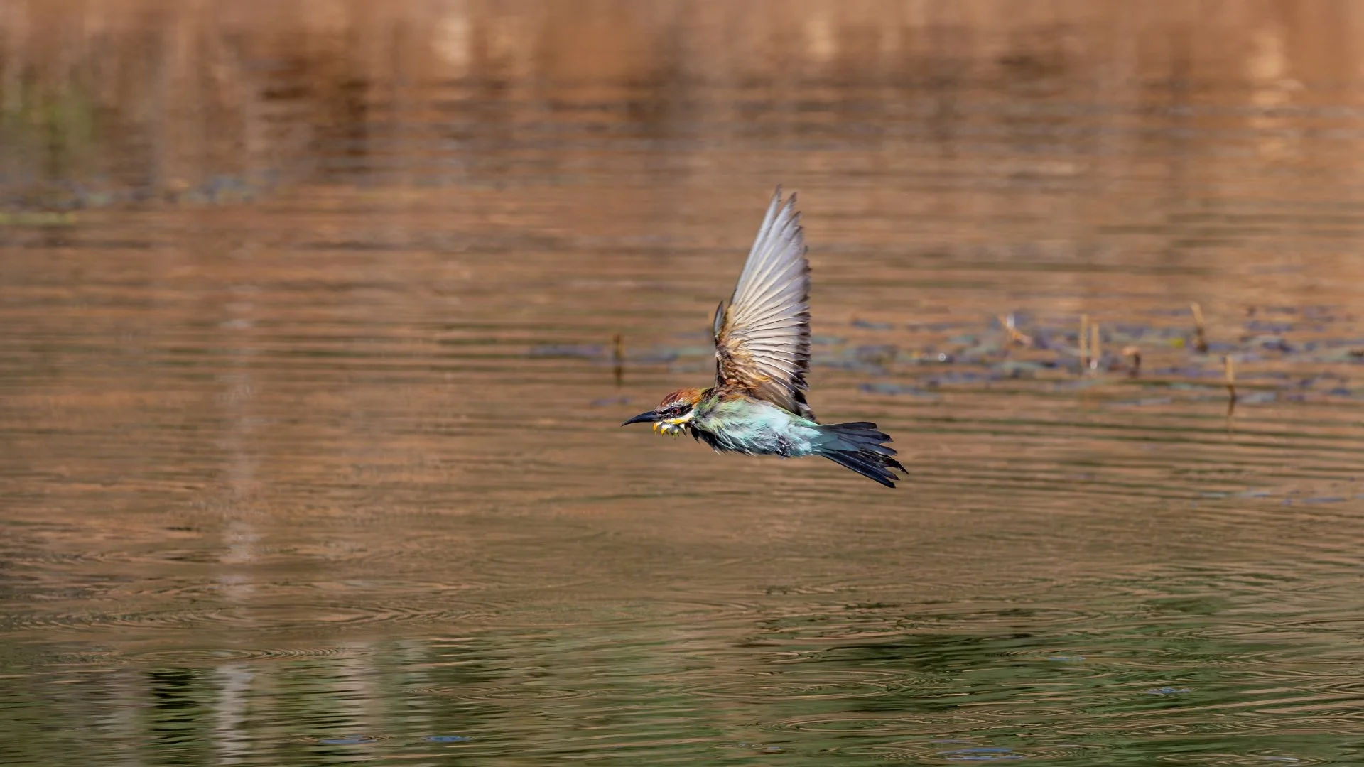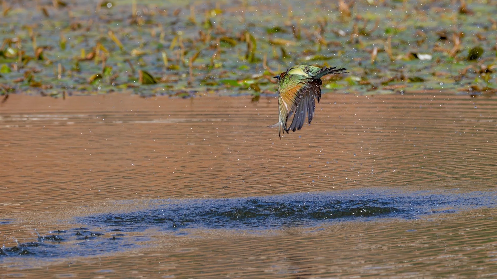 Nature havens in cities are wonderful places to spend time in. This spot in the heart of Jerusalem is one of my favourites. There was a lot of action going on in and around the small lake over the course of one morning. The peak was when a flock of European Bee-eaters arrived to take a bath, diving repeatedly at high speed into the water, completely submerging themselves. It was a spectacular show to witness, they are extremely fast flyers so I was happy to manage to get a few shots that were in focus to record the event.